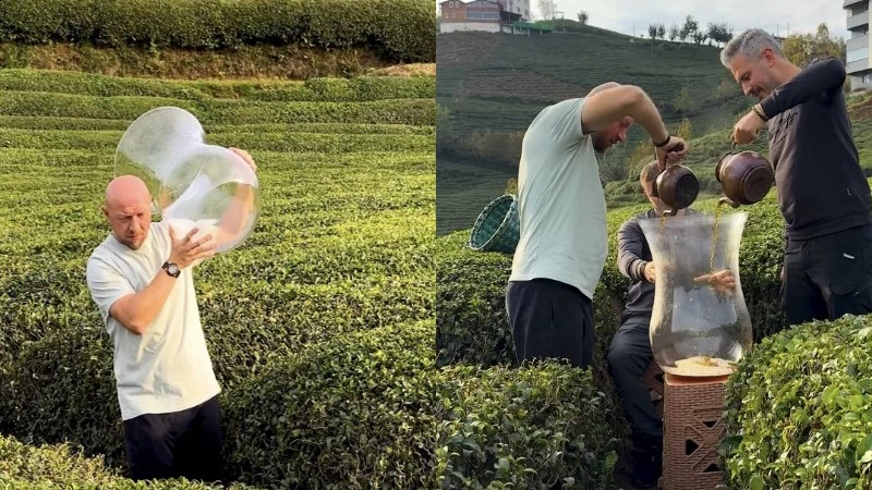 Dev çay bardağıyla yapılan çekim olay oldu